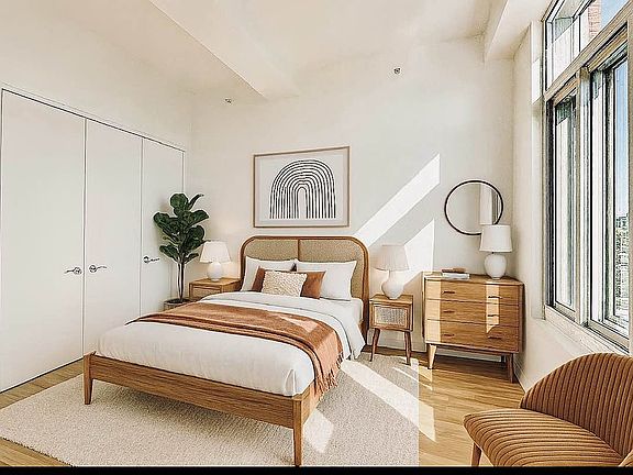 The king-sized bedroom offers a serene retreat with room for a home office or reading nook, and the spa-like bathroom is a true oasis. High ceilings and large windows enhance the airy ambiance, while central air and an in-unit washer/dryer add to your everyday comfort. Triple paned windows through-out.