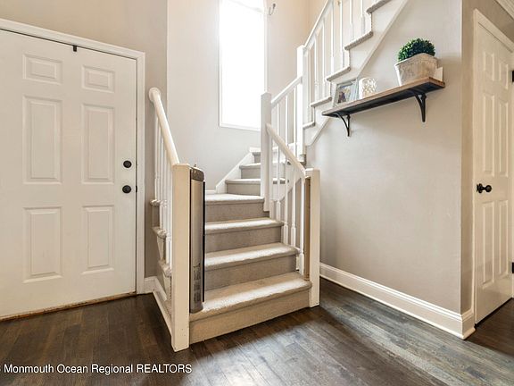 Fall in love with this stunning 3 bedroom end unit townhome overlooking gorgeous open space and walking trails leading straight to Allocco park. This well maintained home features hardwood floors throughout the main level. Enjoy preparing meals in the beautiful kitchen, complete with counter seating and stainless steel appliances. The dining room flows seamlessly into the spacious living room adorned with a gas fireplace and sliding doors that lead right out to the deck - perfect for soaking up the sun!. Upstairs, the owner's suite boasts soaring ceilings, a skylight, and a private bath. Two additional bedrooms and another full bath round out the second level. Plus the finished basement offers endless recreational opportunities. Ideally located near shopping, Garden State Parkway and more.