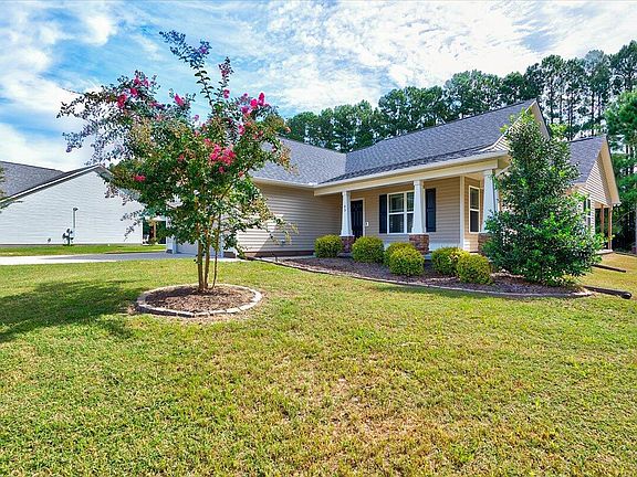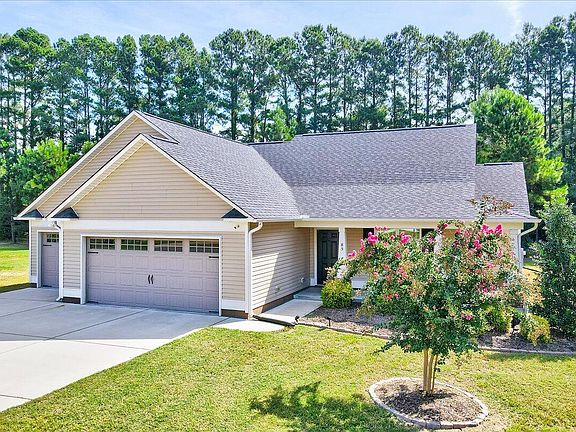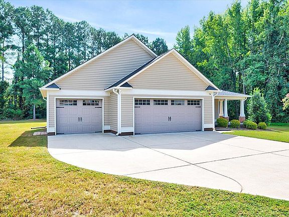 2018 meticulously maintained home on .4 acres with granite, three-car garage, coiffured ceilings in primary, vaulted ceilings in living room/family room, gas fireplace, and conveying GE French door refrigerator. Retreat to the primary bedroom, a true sanctuary with a coffered ceiling, a generous walk-in closet, and a luxurious ensuite bathroom featuring a dedicated soaking tub and a separate standing shower. Whether you prefer to sip your morning coffee on the expansive front porch, engage with the super friendly neighborhood or unwind in your serene backyard boarding mature pine trees, the natural tree line serves as a beautiful backdrop and offers privacy. Perfectly situated for convenient living on a cul de sac, this secluded retreat tucked just behind Hwy 50, is only six miles from the bustling 40/42 interchange that provides daily shopping and dining options. Enjoy easy access to everything including Publix which will be just four miles away across from Lowe's Foods. 15 miles to downtown Raleigh.