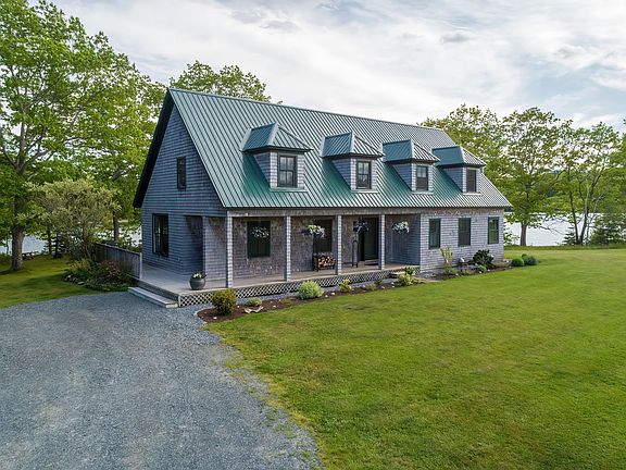 Nestled among a grove of stately oak trees at the end of a private peninsula, Allen Point Cove is perfectly sited on Blue Hill's serene and secluded Salt Pond. This five-acre property with approximately 945 feet of private ocean water frontage is beautifully groomed with a stone wall and perennial gardens that wrap around the house, manicured lawns that transition to an open field, mature evergreens and oaks, and blossoming Cleveland pear trees that line the approach to the property. A gentle sloping front yard takes you past a waterfront treehouse and down to your private dock where the adventures begin. The 3,000+ square foot three to four-bedroom/three bath house at Allen Point Cove features generously proportioned rooms with panoramic views of the Salt Pond, beautiful hardwood floors, and an open, airy layout. Perfectly designed for its setting, all rooms have lovely views of the cove. The daylight finished basement is a wonderful addition and doubles as a family den and recreational space. In addition to the main residence, a sizable in-law suite over the three-car garage looks out over the lawn to the water. Allen Point Cove is just five minutes from the center of Blue Hill, one of Maine's most picturesque coastal villages. Blue Hill offers excellent restaurants, a variety of shops and art galleries, an organic supermarket, a full-service hospital, and numerous musical and theatrical groups. The Kollegewidgwok Yacht Club and The Blue Hill Country Club, both private clubs, offer sailing, tennis, and golf. The soon-to-be-completed YMCA will offer a pool, full fitness center, and senior center. Acadia National Park, Bangor International Airport, and Bar Harbor Airport are all within an hour's drive.