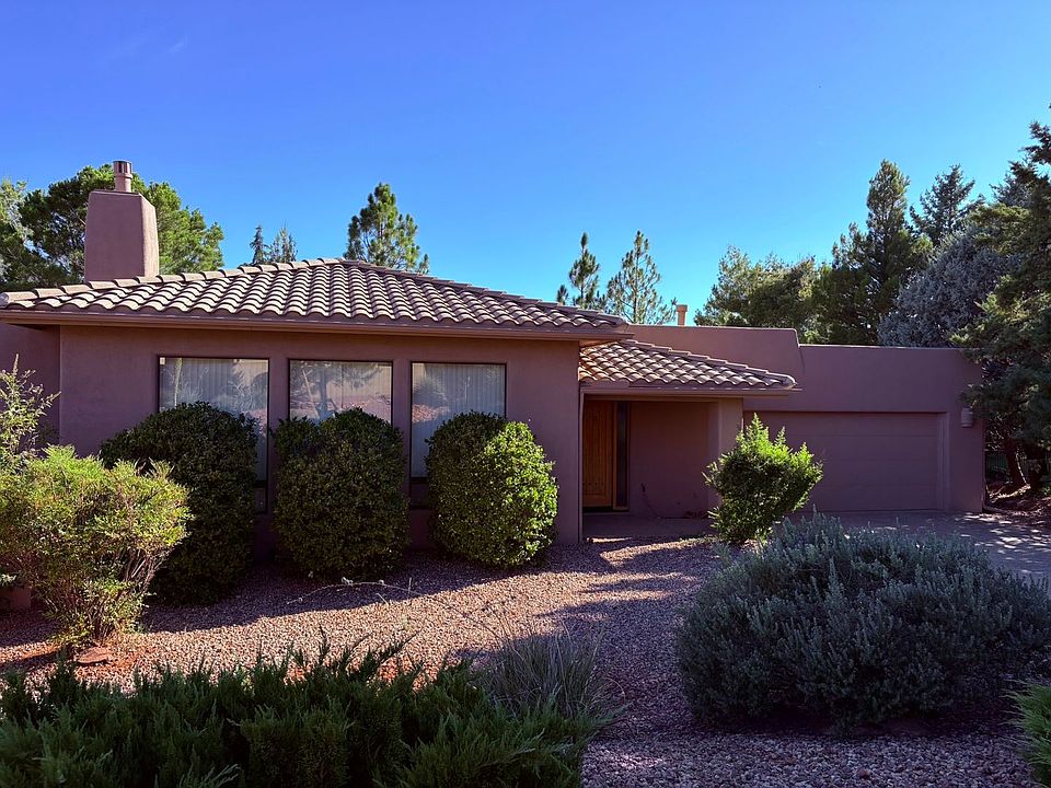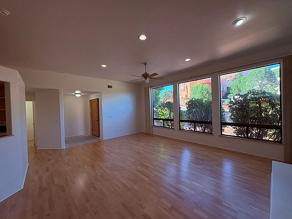 Single level home located in Village of Oak Creek. This spacious 3-bedroom, 2.5-bathroom home offers stunning red rock views, generous natural light, and beautiful wood-look flooring throughout. Spilt floor plan for optimal shared space. The living room has high ceiling with big picture windows that let in a lot of natural lighting. The master bedroom suite features a ceiling fan, large windows, and a bright ensuite bathroom featuring dual vanities, a soaking tub, and separate walk-in shower. You'll also love the big walk-in closet with built-in shelving and endless storage options. Each room opens up to the outside for easy access to nature. Kitchen with plenty of countertop and cabinet space and gas stove. The back yard includes covered back patio. Pets negotiable.