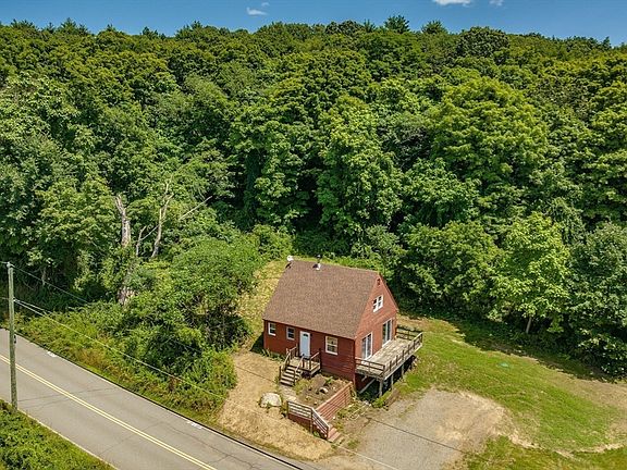 Offers due Wednesday, 7/31 by noon. Nestled on a country road, just 10 minutes to Umass and Amherst Center, this sweet cape awaits its new owners. On the first floor you will find a cozy living room, a good sized dining room, large kitchen, a first floor main bedroom with a slider to the backyard and a full bathroom. There is easy access to the oversized deck with a slider off the dining room and another off of the kitchen, a great space to entertain guests, sip your morning coffee, have an afternoon barbecue or gaze at the stars at night. The second floor has two bedrooms, a 3/4 bath and large storage area. The walkout basement provides a quick entrance from the driveway on inclement weather days. Situated on 1 acre, with plenty of sunshine for gardening, this home has beautiful views of the farmland fields across the street and the plush forest behind it. Perfect for any home buyers wanting to build some quick equity with a little vision and TLC.