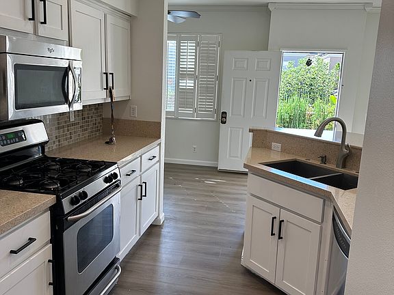 Charming Family Home in the Vineyards with Rooftop Sunset Views! Welcome to 85 Anacapa Ct, a fantastic opportunity to live in the Vineyards, offering a prime location just steps away from the community pool/spa. This delightful 2-bedroom home also features an enclosed den that can be used as a 3rd bedroom, office, or nursery, making it perfect for growing families or those who need extra space. With 2.5 bathrooms and 2 balconies plus a garden patio, this home provides 1227 sq ft of comfortable living space. Key Features: Cozy Interior: Enjoy the 1227 sq ft of living space with no one above or below, offering ultimate privacy and peace of mind. Rooftop Sunset Views: Marvel at gorgeous sunset rooftop views, providing a picturesque backdrop to your evenings. Upgraded Features: The home is painted with designer colors, boasts hardwood floors, and features upgraded light fixtures and fans, adding a touch of elegance to your living space. Modern Kitchen: The upgraded open kitchen featuring Corian countertops, cabinets with pull-out organizers, tile backsplash, deep sink, and stainless steel appliances. Master Suite: The master suite offers high ceilings, dual sinks, a large oval tub, walk in closet and a balcony, creating a luxurious retreat within your home. Outdoor Delights: Relax on your choice of two balconies or the garden patio. There's also a large front brick patio, perfect for BBQs and outdoor entertaining. Convenient Amenities: Stay organized with an attached two-car garage equipped with cabinets and extra storage. The home also includes an upstairs laundry area for added convenience. Location Highlights: Family-Friendly Neighborhood: Ideal for families with young children, this home is within walking distance to shopping, restaurants, theaters, parks, and Whiting Ranch Wilderness Park, providing ample opportunities for outdoor activities and adventures. Commute with Ease: Close to the 241 Toll Road and just minutes away from Irvine Spectrum, commuting to work or enjoying a day of shopping and dining is effortless. Top-Rated Schools: Benefit from award-winning Blue Ribbon Schools, ensuring excellent educational opportunities for your children. Don't miss out on this incredible opportunity to live in a spacious, upgraded, and conveniently located home. Schedule a showing today and experience the comfort and luxury of living in the heart of Foothill Ranch's Vineyards community. Contact us to arrange a viewing or for more details. Renter is responsible for water, gas, electric, and cable/internet. Renter must obtain renters insurance coverage.