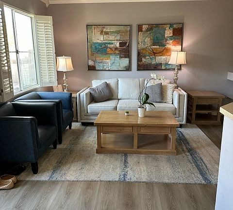 Charming Family Home in the Vineyards with Rooftop Sunset Views! Welcome to 85 Anacapa Ct, a fantastic opportunity to live in the Vineyards, offering a prime location just steps away from the community pool/spa. This delightful 2-bedroom home also features an enclosed den that can be used as a 3rd bedroom, office, or nursery, making it perfect for growing families or those who need extra space. With 2.5 bathrooms and 2 balconies plus a garden patio, this home provides 1227 sq ft of comfortable living space. Key Features: Cozy Interior: Enjoy the 1227 sq ft of living space with no one above or below, offering ultimate privacy and peace of mind. Rooftop Sunset Views: Marvel at gorgeous sunset rooftop views, providing a picturesque backdrop to your evenings. Upgraded Features: The home is painted with designer colors, boasts hardwood floors, and features upgraded light fixtures and fans, adding a touch of elegance to your living space. Modern Kitchen: The upgraded open kitchen featuring Corian countertops, cabinets with pull-out organizers, tile backsplash, deep sink, and stainless steel appliances. Master Suite: The master suite offers high ceilings, dual sinks, a large oval tub, and a balcony, creating a luxurious retreat within your home. Outdoor Delights: Relax on your choice of two balconies or the garden patio. There's also a large front brick patio, perfect for BBQs and outdoor entertaining. Convenient Amenities: Stay organized with an attached two-car garage equipped with cabinets and extra overhead storage. The home also includes an upstairs laundry area for added convenience. Location Highlights: Family-Friendly Neighborhood: Ideal for families with young children, this home is within walking distance to shopping, restaurants, theaters, parks, and Whiting Ranch Wilderness Park, providing ample opportunities for outdoor activities and adventures. Commute with Ease: Close to the 241 Toll Road and just minutes away from Irvine Spectrum, commuting to work or enjoying a day of shopping and dining is effortless. Top-Rated Schools: Benefit from award-winning Blue Ribbon Schools, ensuring excellent educational opportunities for your children. Don't miss out on this incredible opportunity to live in a spacious, upgraded, and conveniently located home. Schedule a showing today and experience the comfort and luxury of living in the heart of Foothill Ranch's Vineyards community. Contact us to arrange a viewing or for more details. Owner pays for trash and sewer; tenant responsible for water, electricity, and gas. Minimum credit score of 600 required. Small/medium dogs and cats allowed with a pet fee. Must show proof of rental insurance within 3 days of rental agreement signature.