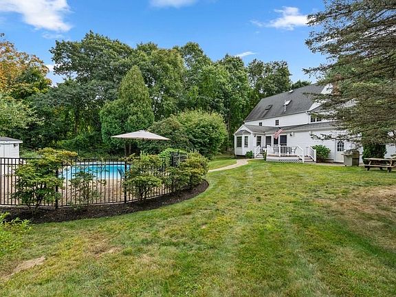 Nestled on a beautiful tree-lined street, this inviting 4+ bed/3.5 bath colonial is close to downtown, schools and has a pool! Gourmet kitchen with custom cabinets, a large island that easily seats 4 and Wolfe and Subzero appliances. French doors lead to a cozy screen porch overlooking a private 1+ acre backyard with in-ground pool. Kitchen leads to an inviting family room with wide pine floors and a fireplace, the perfect place to settle in and relax. The home went through a major renovation/addition in 2003 opening up the kitchen and adding to the master suite and 3-car garage. Hardwoods and Pella windows throughout. The 2nd floor features a generous sized master bedroom with a luxurious master bath and plenty of walk-in closet space. 3 additional bedrooms, another full bath, and laundry area complete the second floor. The basement has a 2nd laundry with sink and a playroom. Plenty of home office options with a finished 3rd floor w/hardwood, high ceilings and a full bath. Town Sewer!