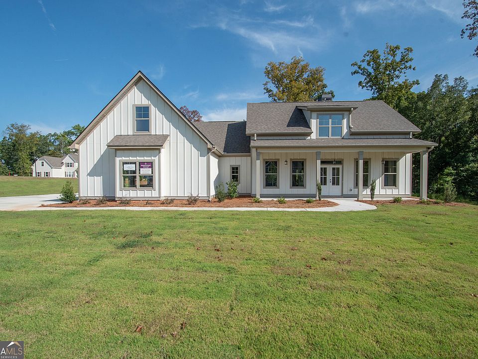 The Woodbury from Dustin Shaw Homes, our farmhouse style plan in Highgate subdivision. This 4 bedroom/3.5 bath home features 3 bedroom on the main including the master with large closet. Open floor plan from the 2 story foyer to formal dining room, kitchen and great room our ideal for entertaining. Spacious back porch overlooks the 1 acre wooded lot.
