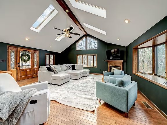 The brick stairway, expansive front yard and circular drive make for a regal and private entrance with plenty of parking. Inside you'll find three bedrooms and two full bathrooms, four fireplaces, two decks, and a screened in porch. As you enter the home, you'll find a spacious living space with a gas fireplace and sunny skylights, that can accommodate large sectionals and furniture. Entering the kitchen you'll find a gorgeous wood burning fireplace, dining area and seating to hangout and relax. Just past the kitchen you will find a large dining room filled with sunlight and a gas fireplace to make your family dinners even more magical and peaceful. Relax on screened in porch with a ceiling fan. There is also a large basement room with walkout access to an outdoor patio for additional work space, bedroom, or kids playroom. Families and pets are welcome. Renter is responsible for utilities. Pets are approved on a case by case basis.