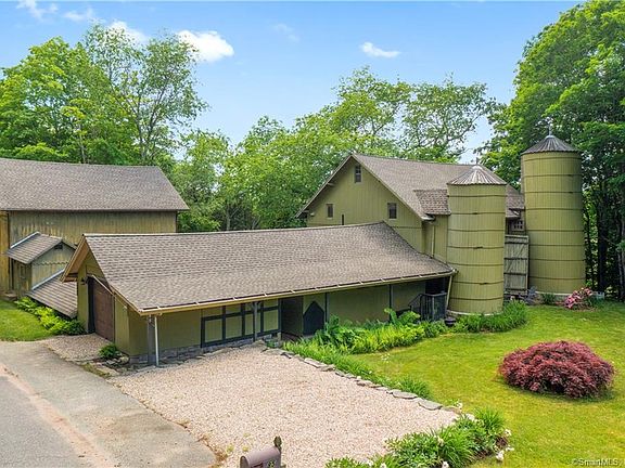 Once you see these grounds and walk into this historic and impeccably maintained barn style home, you'll never want to leave Enter from the covered walkway into the 8x8 foyer and into the first floor silo that is modified for use as a cedar coat closet. The kitchen has stainless appliances with propane cooking, a pantry and sliders that walk out to the 17X15 deck. The two story great room/dining room has 12 foot sliders with a transom window above that walks out to a patio. First floor primary bedroom and full bathroom. The laundry room and storage area has a silo converted into circular stairs to the walkout basement. The upper level of this home is amazing, with 2 bedrooms, office area, sitting room and views of the first floor. The spectacular exterior offers outbuildings including a 3 story barn, enclosed stone patio, fenced garden area, stone walls beautifully accented as retaining walls and enhancing the landscape. Located in a scenic area of East Haddam, this impressive home was a working farm from the 1800's to the 1970.s and has original architectural blueprints. Easy access to highways and close to state parks.