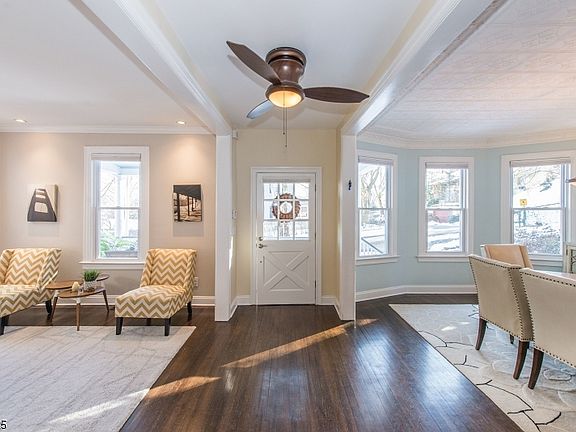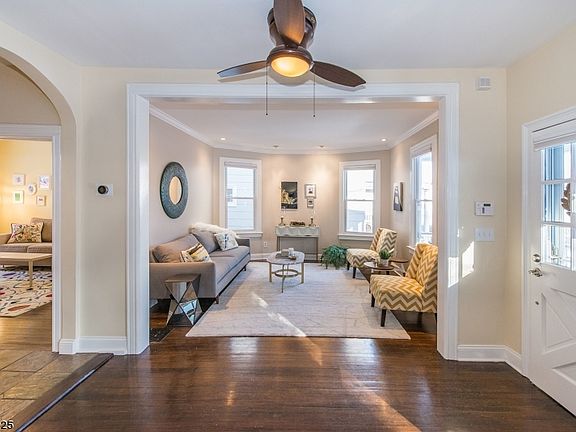 Looking for 'off the chart walkability?' This exceptionally sunny north end colonial offers that & so much more! Begin your tour on the open porch & you will be charmed before you walk thru the front door! One of the highlights is the modern E/I kitchen w/ ss apps, granite & recently added cabinetry, making this kitchen ideal for buyers who appreciate storage. A pantry & mudrm are steps from the kitchen. The 1st flr also offers an updated full bath next to the 4th bedrm which doubles as a den (PERFECT guest quarters!) 3 bedrms & newer full bath complete the 2nd flr. H/w flrs throughout (some brand new) Replacement windows & C/A too! Two patios in the fenced yard make it the perfect place for lounging. Hop on the jitney 1 block away, walk 13 min to Bay St station or 5 min to the NYC bus & many restaurants!