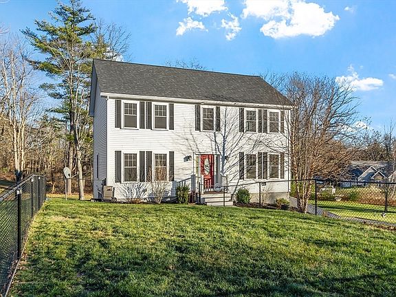 Located on a peaceful country road, this home abuts the town forest, providing a serene backdrop and opportunities for outdoor adventures. The 3 spacious bedrooms, each featuring its own private bathroom, ensure everyone has their own space. 1st floor laundry is conveniently located in the 1/2 bath. Enjoy the open-concept 1st floor w/ beautiful hardwood floors throughout. The heart of the home is the well designed kitchen w/ granite countertops, stainless appliances, large island - perfect for cooking and entertaining. The slider leads to a composite deck, making outdoor dining or relaxation effortless. Upstairs, the primary suite is a true retreat, featuring cathedral ceilings, walk-in closet, and a luxurious bathroom w/ double sinks and an oversized custom tile shower. This home is situated on a large lot & the irrigation system keeps the lawn looking lush and a fenced area for fur friends. Walk-out basement w/ high ceilings offers incredible potential to finish. Don't miss this gem!