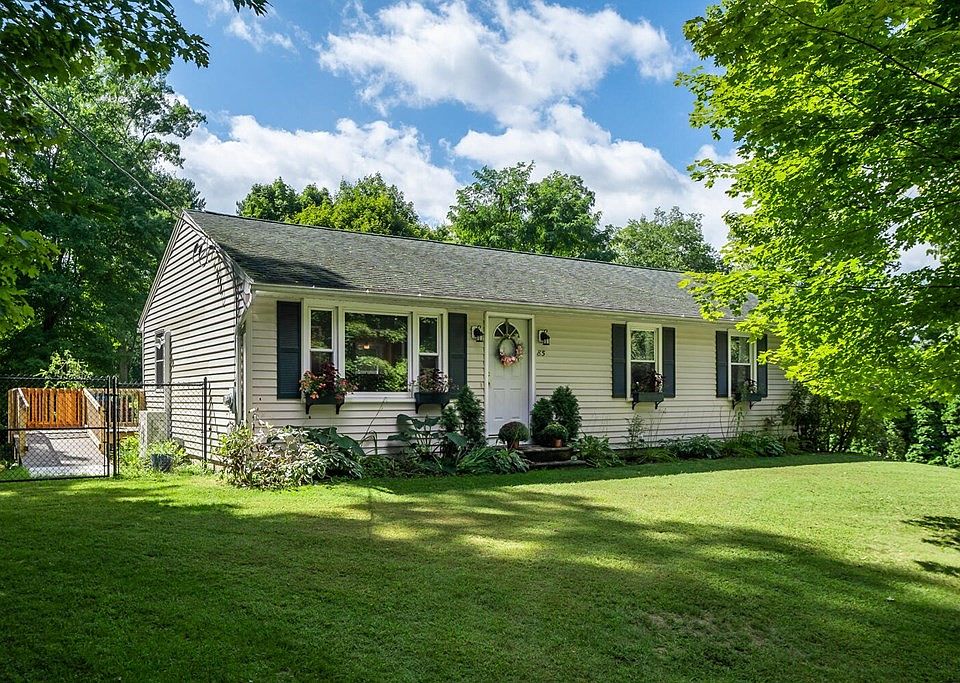 Pack your bags and head to 85 Bay Road! This neat & clean MOVE-IN ready ranch features wonderful updates, including a large composite deck off of the kitchen overlooking a fenced yard w/ a raised bed garden area, a mini split for heat/AC, new flooring throughout (tile in full bath & bamboo laminate elsewhere), new recessed lighting, and an updated full bath w/ a new granite top vanity. The large eat-in kitchen opens to the deck & the wall between the kitchen and living room has been opened up to provide sight lines that make entertaining a breeze. 3 bedrooms, all w/ closets and recessed lighting, round out the main floor. The lower level features a 1 car under garage, a laundry area with included washer/dryer, and an efficient Buderus heat/hot water system. Wired for a generator. Replacement windows, vinyl siding, town water & sewer, plus a wonderful commuting location less than 15 minutes to Amherst center & UMass and Amherst College make this home a winner. OPEN HOUSE SUNDAY 1-3.