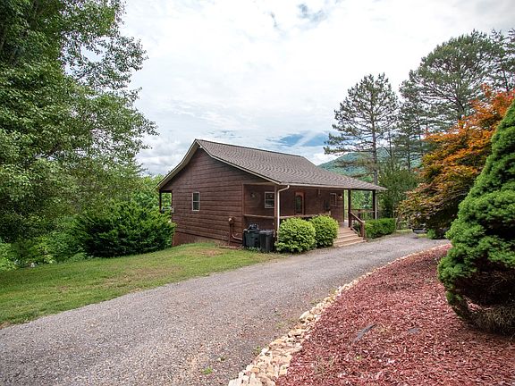 Beautiful mountain view cabin, 10 minutes from downtown Murphy, John C. Campbell Folk School, Harrah's Casino, hospital, & community college. The exterior features a circle drive, mature landscaping, multi level porches & decks with vinyl ceilings & soffits, fire pit area, & a great yard! On the main level, there's an open great room with hardwood floors, cathedral ceilings, oak cabinets, & a rock gas log fireplace, master bedroom with ensuite bath, & laundry room. Basement level has another great room, guest bedroom, and full bathroom. The only restrictions are against junk cars & appliances in the yard and living in a camper or tent..and no HOA fee. Cable high speed internet, good cell service, move in ready! Only 2 homes on the well. What more could you want? Inspection reports available.