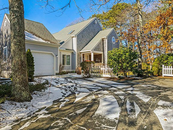 Nestled in a quiet, neighborhood surrounded by nature, while still less than a five-minute driveto shopping, restaurants, wildlife refuge, and Rt. 28, this charming 2 bed 3 bath 1700+ sq ft.townhouse hits all the sweet spots. Surrounded by beautiful landscaping, step into a world ofcharm in this townhouse where elegance meets comfort. The kitchen dazzles with granitecountertops and white cabinets, while the family room boasts an elegant fireplace and soaringceilings, magnifying the natural light pouring in. Enjoy two primary suites--one on each floor--along with a dining room, eat-in kitchen, and a delightful four season sunroom. Complemented by an outdoor stone patio accessible through the living room's French door-style slider there is plenty to enjoy inside and outside. With two driveways for extra parking, a large clean basement, and transom windows, there is plenty of light and room. This townhouse is a delightful canvas for your story of home, come view today!