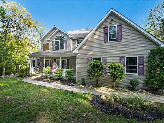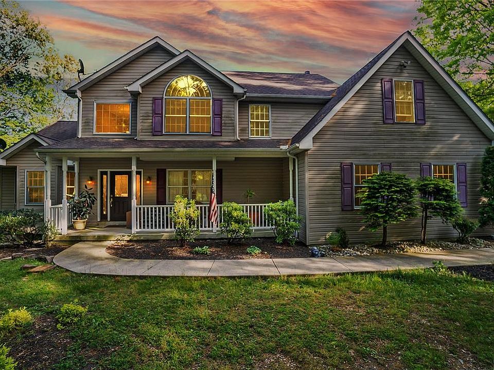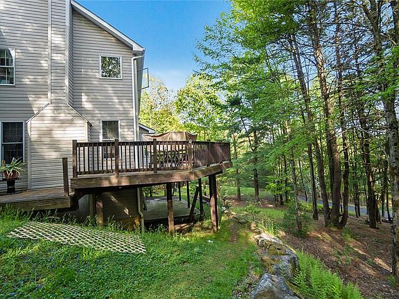 Introducing a picturesque haven nestled in a serene enclave, this 4 BR , 2.5 bath Colonial home. Marvel at panoramic vistas of the majestic Blue Mountain and the adjacent ski area. Walk inside to the grand 2-story foyer adorned with gleaming HW floors. The expansive kitchen boasts exquisite maple cabinets, eat-in bar area, and a charming breakfast nook. Entertain in style in the spacious FR, featuring a striking floor-to-ceiling wood-burning FP, perfect for cozy gatherings on chilly evenings. Unlock the magic of indoor-outdoor living with a set of French doors leading to the expansive wrap-around deck. Discover versatility with a 1st floor office, LR, half bath, and laundry. Ascend to the 2nd floor, where 4 BRs await, including a luxurious MBR suite boasting a serene sitting area and a spa-like bath with a corner Jacuzzi, double sinks, and a rejuvenating shower. A 2C garage, ample driveway parking, and a partially wooded one-acre lot complete this idyllic retreat. Unfinished basement with 9 foot tall ceilings, and rough plumbed full bathroom offers plenty of space waiting to be customized. Call today!