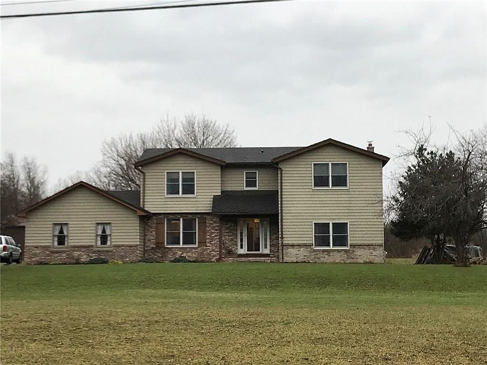 2,689 square feet of pure delight! Built in 1982 & nestled on 1.96 acres. Large barn @ rear of property. Master bedroom suite, 4 bedrooms, 2.5 baths, first floor laundry, formal dining room, formal living room plus family room. Roof tear off 2007. Barn tear off roof in 2016. All replaced Anderson windows 2007. Public water, septic. Bath in master has radiant heat as well as entire first floor (excluding laundry room). Large center island in kitchen. Above-ground pool 2011. Convenient, quiet location minutes to I490/Churchville. Live in the country but only minutes to the city. Close to thruway and Buffalo.