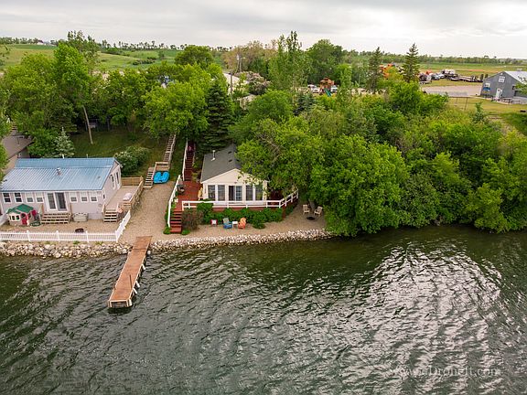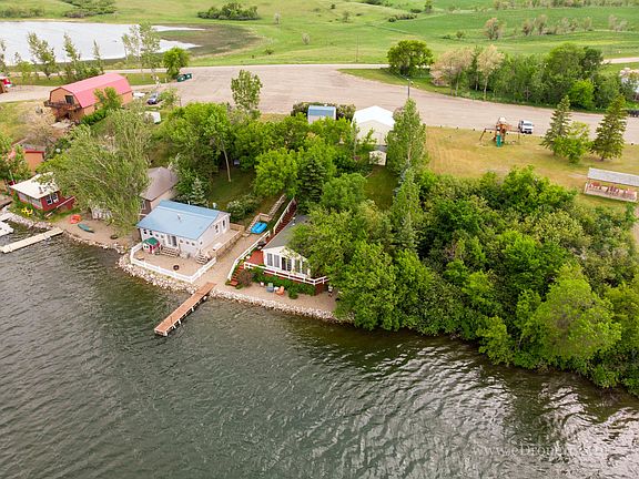 This beautiful cabin and large storage building is nestled in lots of mature trees on an OWNED LOT with 50 feet of shoreline and beautiful views of Brush Lake! This is a perfect retreat located only 50 miles from Bismarck on paved roads. The parcel has lots of trees for protection from the sun and wind. It has a private well and septic system and rural water is an option. This cabin has a wrap around deck that is 674 sq ft and overlooks the lake, great for relaxing and entertaining. The home features a living room with lots of windows with views of the lake. The kitchen has been updated with gorgeous hickory cabinets, newer countertops and stainless appliances. There is character in this cabin with beadboard trim. The bedroom has a 3/4 bath adjoining. This cabin has one of the few garages at Brush Lake; it is a huge double detached garage with plenty of room for vehicles, boat and toys! There is a private septic system with 1,000 gallon capacity and a well and pump house. New shingles were installed in 2011. This Charming lake cabin and the property is located next door to the Brush Lake Pavillion and close to the public boat landing. The 24' x 36' storage building is great for storing vehicles, boats and recreational toys. Many miscellaneous tools and hardware are negotiable. Also included is a Zachmeier adjustable, roll-out dock. The cabin furnishings are included. The land between the Pavilion and cabin is not owned by the sellers, but is fenced on part of the Pavilion property. Special assessments are yearly for trash. Rural water available, but they use well and water lawn from lake.