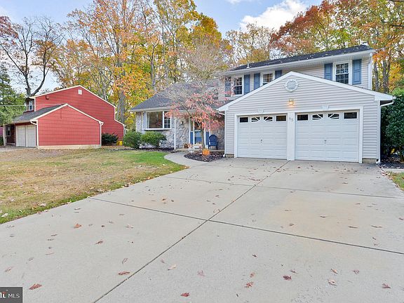 Welcome to this beautifully maintained 4-bedroom, 2.5-bath colonial in the highly desirable Wedgwood community, overlooking the 11th hole of the golf course. This home blends elegance and comfort, starting with a covered front porch that leads into an airy 2-story foyer, featuring porcelain tile, a skylight, and a fully renovated half bath. The formal living room offers a large bay window and hardwood floors that flow into the dining room, which includes crown molding and French doors opening to the backyard. The custom-designed kitchen boasts granite countertops, stainless steel appliances, 42” cabinets with smart storage solutions, a travertine backsplash, recessed lighting, and a cozy breakfast area with views of the private backyard and golf course. Enjoy relaxing in the spacious great room, highlighted by a custom gas fireplace, stone surround, recessed lighting, bamboo flooring, and custom blinds. The main floor also includes a laundry room with ample storage and porcelain tile. Upstairs, the second floor offers four generously sized bedrooms. The main suite features an upgraded ensuite bath and two walk-in closets, while the full basement provides ample storage space, a sump pump, and a French drain. The large 2-car attached garage includes a bonus room with a workbench. The fenced-in backyard has patio pavers, an open path to the woods and golf course, plenty of room to enjoy nature. This home includes Anderson Renewal windows and siding, an ADT security system, and is conveniently located near Route 42, the Atlantic City Expressway, and Gloucester Premium Outlets. Located in a top-rated school district, this home is a true gem with spacious living areas and thoughtful upgrades.