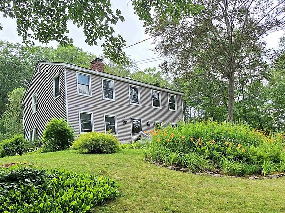 Well appointed and maintained, this home is ready to move in to. Located near Maine/NH border. Set on hilltop and maturely landscaped with lots of perennial gardens. Beautiful Stone patio. Gorgeous kitchen with granite countertops and a peninsula. Dining area has pocket wood french doors leading to living room with brick fireplace that has a wood stove insert for help with heat. 1/2 tiled bath and laundry on the first floor. Extra room for office, den or dining room on first floor. 3 spacious bedrooms on the second floor and 1 full bath with a corian countertop/double sink. Master front to back with 3/4 bath boasting a glass corner shower and tile flooring. 2 Car garage is a little smaller on one side. Wood and Garden shed in back.
