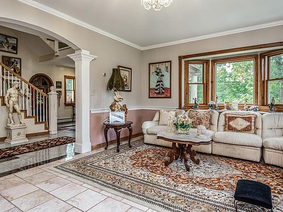 - Liv Dscrp: Window(s) - Bay/Bow/Box, Chair Rail, Flooring - Marble, Archway, Crown Molding, Lighting - Pendant