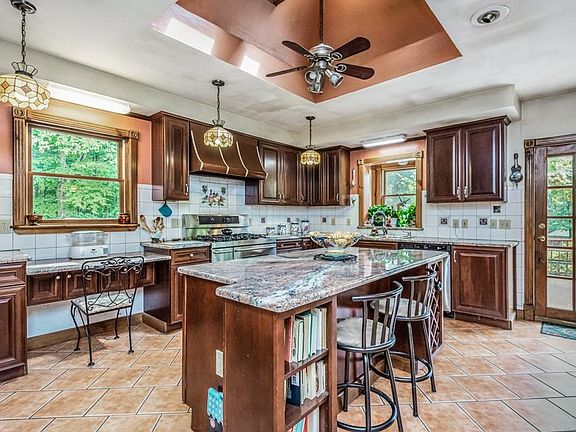 - Kit Dscrp: Ceiling Fan(s), Countertops - Stone/Granite/Solid, Cabinets - Upgraded, Flooring - Stone/Ceramic Tile, Kitchen Island, Stainless Steel Appliances, French Doors, Recessed Lighting, Balcony / Deck, Wood / Coal / Pellet Stove, Exterior Access, Ceiling - Coffered, Gas Stove, Lighting - Pendant, Archway