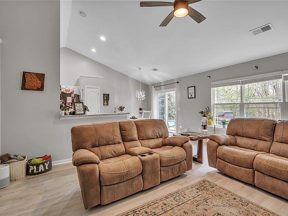 Charming 3-bedroom, 2-bathroom home situated in the highly desirable Powdersville Area and School District awaits you. Nestled within the picturesque Caledonia subdivision, this move-in ready residence boasts an impressive floor plan and recent renovations. Upon entry, discover the two secondary bedrooms and a full bath on the left, while to the right, the garage, expansive laundry room, and storage area offer convenience. Step into the inviting open layout featuring a kitchen adorned with granite countertops and new flooring, strategically positioned for seamless access to the dining room and family room. The master bedroom showcases a vaulted ceiling, separate tub and shower, dual sinks, and a walk-in closet. Outside, a delightful patio overlooks serene woodland views on this spacious corner lot measuring approximately 0.34 acres. Enjoy the community pool come summer, conveniently located near I-85, shopping centers, and the YMCA. This home boasts numerous appealing features—schedule your private tour today to explore them all!
