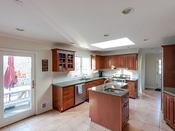 Spacious 4 bedroom colonial on quiet cul de sac just a short distance to schools and train. Open floor plan, updated kitchen with high end appliances, center island and granite counters. First floor also includes large dining room, office, laundry/mud room and sun room that opens to a spacious tired deck overlooking large level yard. Master bedroom has walk-in closet, sitting/dressing area, and master bath. Lower level is finished.