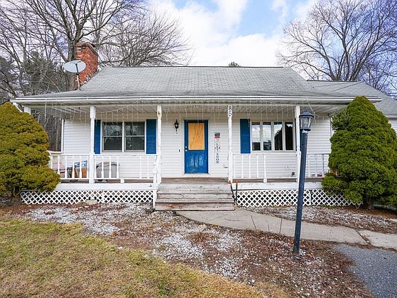 Great opportunity to build some equity with this classic New England Cape. The farmers porch is a great way to invite you into this home. Once you enter there is a living room with hardwood floors and a wood burning fireplace. Another great feature of the main level is a bedroom that can also be used as a home office if needed. The large open kitchen has plenty of room for a dining space. The washer and dryer was moved to the kitchen for convenience but can always be moved back to the basement. All the appliances will remain as well. There is a family room just off the kitchen that has a pellet stove which acts as a secondary heat source. This room is also great for entertaining with its proximity to the kitchen. The second floor has two bedrooms both are very large. The main bedroom has a room off of it that acts as a walk-in closet/changing room. The exterior of the home has a large deck off the back as well and a flat yard. This home is located so its easy to commute as well.
