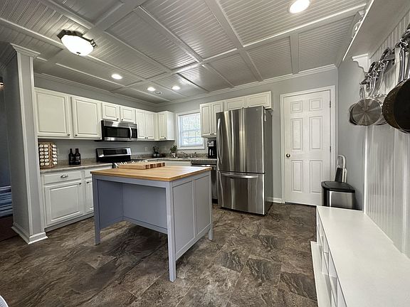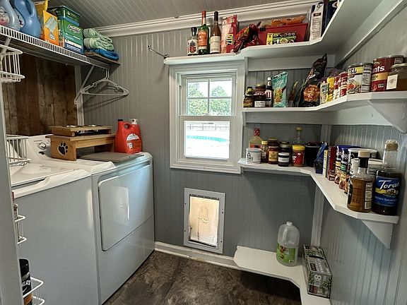 Charming 3BR/2BA country-style ranch set amidst serene surroundings. This home boasts an attractive curb appeal with a welcoming front porch ideal for peaceful, rocking-chair relaxation. Outdoors, you'll be delighted by the generous above-ground pool and expansive flat backyard. The well-appointed deck is the perfect setting for hosting gatherings and entertaining guests. Step inside to find a captivating interior, perfectly designed to offer comfort and style. The well-equipped kitchen features white cabinetry, beadboard accents, stainless steel appliances, a practical pantry, and an integrated microwave. The custom mudroom bench adds a distinct touch! The main living room, with a cathedral ceiling and a cozy fireplace, is supplemented by a separate formal dining room. Generously-sized secondary bedrooms are provided, along with a primary bedroom showcasing a cathedral ceiling. Both bathrooms have been tastefully updated to reflect modern aesthetics. This home is a seamless blend of rural charm and contemporary convenience.
