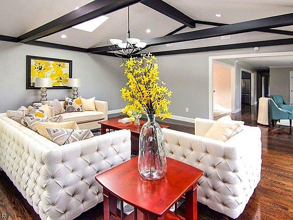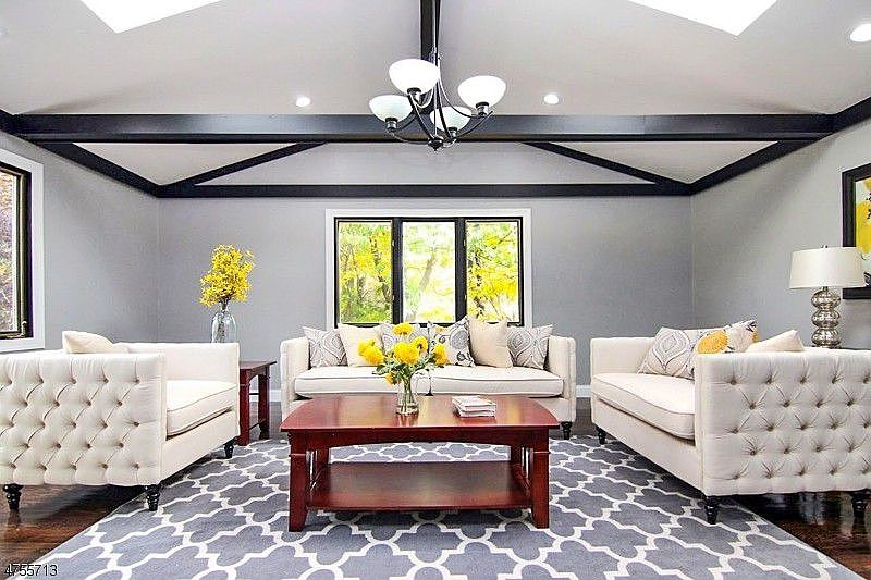 Welcome to 85 Christine Dr. located in an Amazing Neighborhood/Community of East Hanover. This is an Extended Ranch that is enriched with character and Modern Finishes. Home has GREAT CURB APPEAL,New Vinyl Siding and Shutters, Custom Stone At Home Entrance). This 5 Bedroom 3 full Bath home also Features over 3,000 sq ft of IMPRESSIVE RENOVATED INTERIOR. Home has Central A/C and Heat, Custom Lighting in Every Room, White Crown Moulding and Gleaming Dark Oak Hardwood Floors throughout, Beautiful Living Room with a Bay Window, Dining room, Large BRIGHT Family Room with Custom Black Exposed Wood Beamed Ceilings and Ceiling Skylights. Enjoy CUSTOM MODERN KITCHEN that Is loaded with cabinets Quartz Countertops, Stainless Steel Appliances, Center Island with built-in Wine Rack. This haven has 2 Amazing