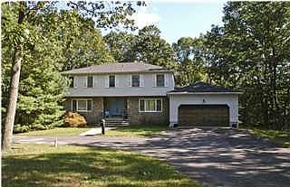 Spacious center hall colonial on approximately 1.4 acres! Family room half flight up on separate level with wood burning stone fireplace. Newer hardwood flooring in LR/DR. Newer double front doors & newer rear deck. Newer well. Large MB suite with walk-in closet + 2 additional closets & an attached full bath. Enlarged, circular driveway. Home is beautifully set back with partial stone front face. Finished basement with tall ceilings, a rec. room and an additional study/office. Select for photos!