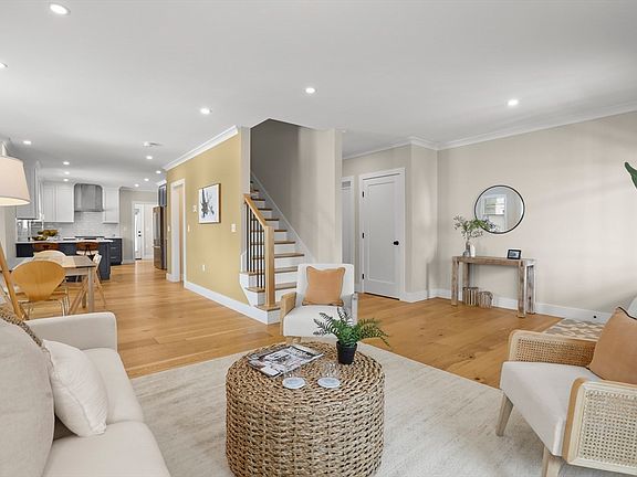 Discover modern luxury in this stylish, down-to-the-studs 2022 build, four bedroom townhouse. Featuring an open-concept layout with light-filled dining area, and inviting living room, the home combines contemporary design and functional ease. The gourmet kitchen boasts sleek, stainless appliances, quartz countertops, gas stove, vented hood, and abundant cabinetry/storage. Each bedroom offers ample space and natural light, with the primary suite featuring a walk-in closet, and adjoining bathroom. The second floor bedroom also has a walk-in closet, and ensuite spa-like bath. Additionally, a bonus multi-purpose area adjoins the two lower level bedrooms. Enjoy the convenience of smart home technology, energy efficient heat pump HVAC, and a private yard for gardening and relaxation. Situated in a vibrant neighborhood, close to shopping, public transit, restaurants, and Alewife Brook Greenway, this townhouse is the perfect blend of comfort and modern conveniences.