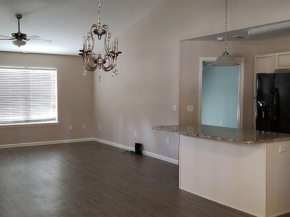 Beautiful home at Baymeadows Subdivision with view lake, fenced in back yard, large .062 ac lot, professionally landscaped with irrigation system and in a quiet setting. Interior offers LVT flooring and window blinds throughout, spacious open living area with high ceilings, kitchen has custom cabinetry and granite counter tops plus appliances. Large master bedroom with trey ceiling and recessed lighting, double sinks and walk in shower in master bath plus a very spacious walk in closet and two more bedrooms on other side of home with second bath. Very bright and cheerful home and large fenced back yard plus two car carport with side porch to rear entry door. This home also has an alarm system.