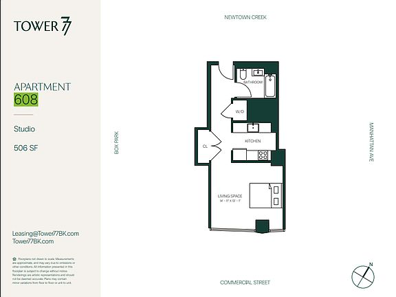 Conveniently located just moments away from the vibrant dining, shopping, and entertainment options of Greenpoint, Tower 77 provides residents with easy access to everything this dynamic neighborhood has to offer. With nearby transportation options including the G train and East River Ferry, Manhattan is just a short commute away.