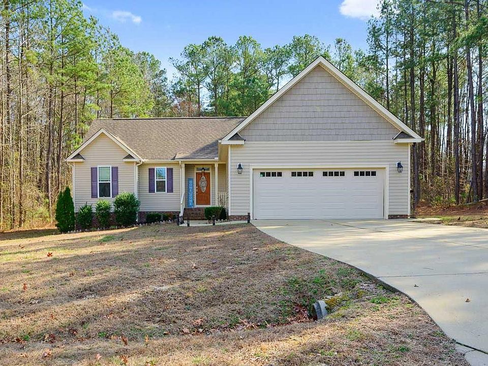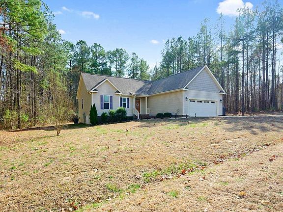Quaint and cozy split ranch plan with a large private lot just shy of an acre. Minutes to Downtown Youngsville and Wake Forest and easy access to 401! Custom built home with hardwoods, vaulted ceiling & crown molding throughout. Large primary bedroom w/ trey ceiling, walk in closet, bathroom with two sinks, separate shower & soaking tub. Kitchen with granite counter tops, breakfast bar, stainless appliances and custom cabinets. Enjoy the eat in dining as you look out to your massive backyard! Large back deck with patio pad. Spacious 2 car garage w/side entrance No HOA. Private quiet street.
