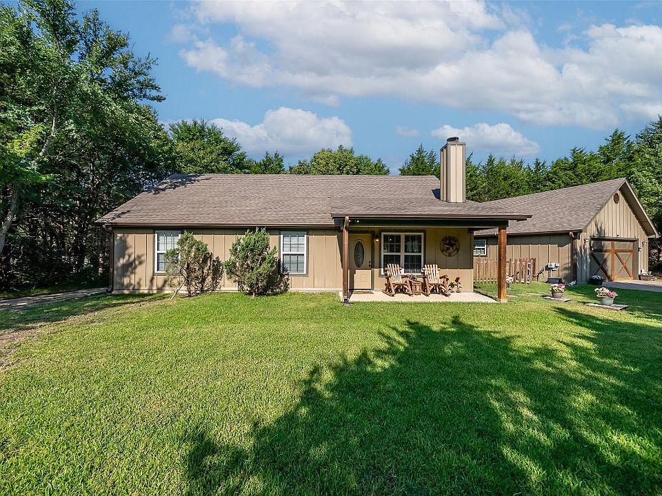 Texoma Special! Beautifully Constructed 2013 Build on over 1.5 Acres! Quality Materials throughout with Stained Concrete Floors, Dark Brown Cabinets with High Level Granite, Stainless Steel Appliances, Spacious Bedrooms and Wide Open Floorplan. Oversized Garage with Half Bath and Exterior Shed make for Ample storage! Sewer line hookup and Electric near garage for camper access. Front and Back Covered Porches! Property is surrounded by huge tall trees for great privacy. Sprinklered Lawn, Gutters, and French Drains all around. Cedar Mills Marina just down the street to enjoy the lake with Restaurant, Boat Ramp, and Slips. About a Mile to the Public Park and 3 Miles to the Casino. Fiber Internet Available Set up a Showing Today!