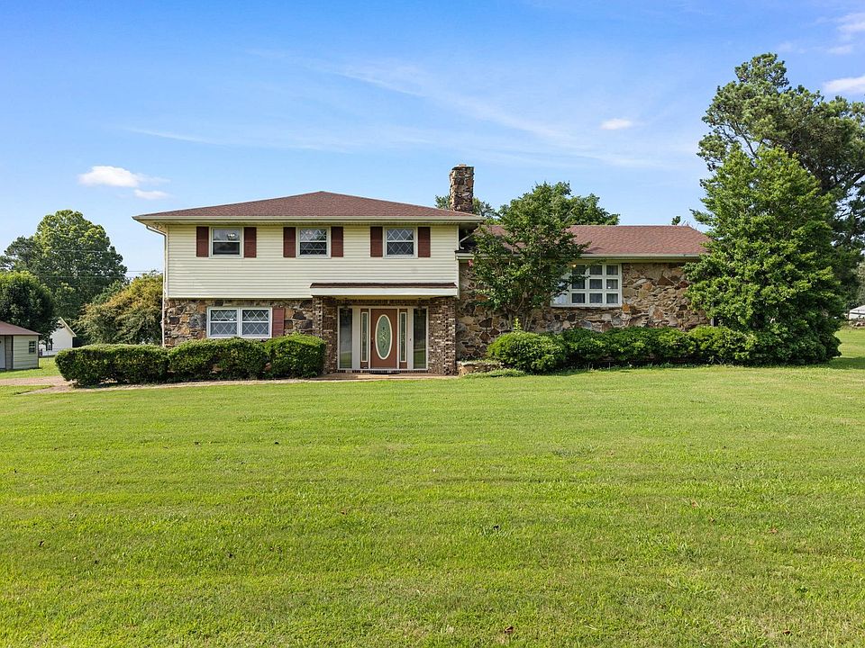 Welcome home to this spacious and classic 1975 rock-and-vinyl tri-level, ideally located near Brooks High School. Designed for comfort, character, and connection, this 4-bedroom home offers 2 full baths and 2 half baths with room for everyone to live, gather, and grow. The beautifully updated eat-in kitchen features warm maple cabinetry, granite countertops, and a ceramic tile backsplash—perfect for morning coffee, weeknight dinners, and holiday traditions. The main level includes a generous living room with a striking rock gas-log fireplace and a formal dining room ideal for entertaining. Downstairs, an expansive family room with a second rock fireplace creates the perfect space for movie nights or relaxing evenings at home. All bedrooms are conveniently located on the same level, with abundant closets and storage throughout. Situated on a large, level lot, this home is ready for its next chapter.