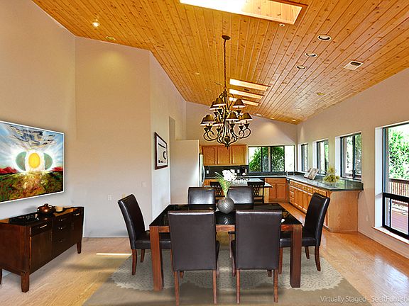 Live large with End of the Road Privacy on 2.5 acres in paradise. Newly decorated/painted interior and decking. Main living on top floor with wrap around decks for outdoor living and views of Sedona's famous red rocks: Cathedral, Thunder, Chimney, Courthouse and beyond. Hardwood flooring and ceilings in main living area. Lower level can be used as guest area, in-law unit or separate living area with 2 bedrooms, living room w/fireplace, bathroom. A large recording studio can be re-purposed to accommodate your creative dreams. Horses OK. Square footage approximation on each level but county shows total of 6532 sq. ft.