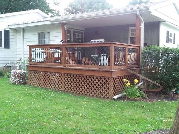 Mobile home with large addition on the edge of city limits in Eldorado. Has galley kitchen, dining room, large front room, a room I use for a sewing room, two baths, two bedrooms, a room we use as a den/family room and a separate room for laundry. All new flooring throughout with exception of the small bedroom which is being redone. Has new partially covered deck off the front, another covered deck out the sliders of the master bedroom, garage and a lean-to. Low taxes.
