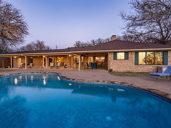Enjoy evenings on your extended covered patio poolside with sunset views off the bluff of the valley and golf course below! This beautifully updated ranch-style home on 1.79 acres boasts a double master floor plan. Each oversized master suite has their own full bath and stunning views of the backyard oasis. For the musically inclined, the newly-added second master has extra sound-proofing and a large connected flex-space perfect for a recording studio or a very large comfortable home office space. Kitchen remodeled with upgraded appliances, glass backsplash, granite countertops; lots of counter and storage space. Original 4th BR converted into formal dining, but can easily be converted back into BR.