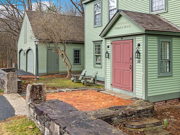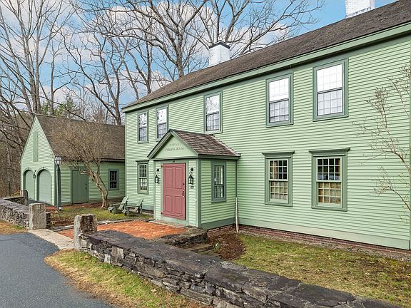 Come and see this delightful condo at the Village in Lyme. Convenience and ease of living are paramount in this single level home. Enter through a cozy vestibule and take in the antique accents throughout. Wide board floors and aged paneling transport to a former time, interspersed with newer appliances and abundant light. Great kitchen, dining and living rooms flow seamlessly from one to the other while viewing and taking in the riverine sounds of the babbling brook below. With two spacious bedrooms, and two en-suite bathrooms and a powder room for guests this dwelling could work for a variety of different residents. There are plentiful closets, walk-ins in the primary bedroom. There is a detached garage with bonus room adjacent and a great family room/office space above. A lovely brick patio behind the garage but in view of the brook completes this property. A must see! Delayed Showings begin on Saturday 4/22 at 10.30 am
