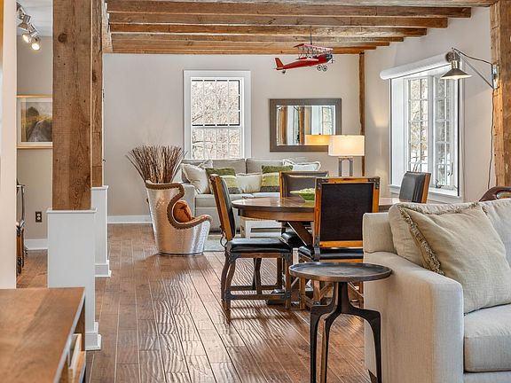 This amazing condo, recently featured in the New York Times, says WOW from the moment you step into the open floor plan featuring hardwood floors, exposed hand hewn beams, views to Hewes Brook plus new kitchen and baths. The 2 bedroom suites are on opposite ends of the home, giving plenty of privacy. In the sunny and spacious living room, there are 2 distinct seating areas, with high ceilings and a cozy propane fireplace. Enjoy a great meal in the dining area or you can pull up to the kitchen island. Additional features include a walk-in pantry, separate laundry room, a mudroom and detached 2 car garage with storage above. This condo is the entire second floor of an historic post and beam building that has been beautifully modernized while keeping so much old world charm. The grounds of The Village condominiums have lush lawns, stone walls, mature apple trees, perennial beds and border conservation land. Don't miss out on this unique home with the convenience of condo living.