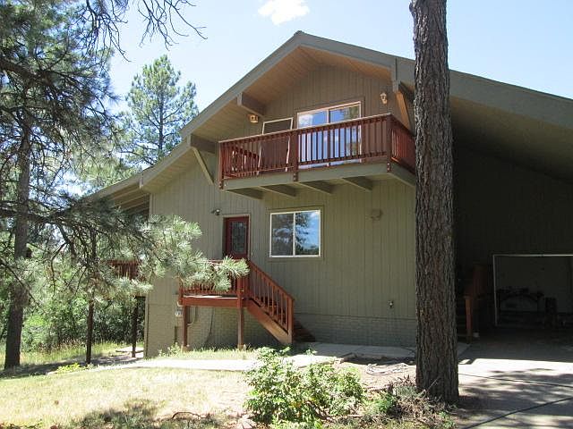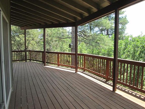 If you want lots of surrounding trees and a quiet setting, this house is for you! Spacious 3-bdrm + office, 2-bath house located on beautiful 3-acre lot 15 minutes from town in Rafter J subdivision. Bright kitchen, huge deck off of living room and two decks upstairs, wood-burning stove, 2-car garage. ONE dog considered with pet deposit (no incessant barkers or puppies); huge fenced-in, grassy, wooded area for dog. Max 3 people due to septic system limitations. No smokers. Good rental references required. *NOTE: there is a small apartment below currently occupied by professional couple who are very respectful and quiet, with a separate entrance and its own parking area (no shared utility bills between the 2 units). Landlord pays for water, trash & snow plowing. Tenant pays electric & propane.