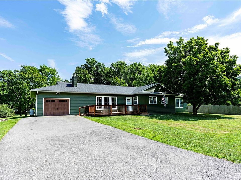 A/O 8/11. Contracts are out. Nestled serenely off the road, this sprawling ranch underwent a complete renovation in 2017, transforming into a modern oasis of comfort and style. Step inside to discover an inviting open floor plan adorned with gleaming hardwood floors throughout. The heart of the home is the spectacular kitchen, featuring soft-close cabinets, stainless steel appliances, granite countertops, and a convenient gas stove for culinary enthusiasts. The living space is anchored by a striking floor-to-ceiling stone fireplace with an insert, creating a cozy ambiance perfect for gatherings and relaxation. Originally designed as a 4-bedroom residence, one bedroom has been reimagined into a versatile space ideal for an office, playroom, or media room, catering to the needs of modern lifestyles. Indulge in the new primary suite, boasting a spa-like bathroom and a spacious walk-in closet, offering a private retreat within your home. Step outside onto the expansive deck, complete with a relaxing hot tub and overlooking a lush, level backyard, perfect for outdoor entertaining and enjoying peaceful moments. Below, a full unfinished basement presents endless possibilities, whether for storage, a workshop, or future expansion. This meticulously renovated ranch offers not only contemporary comforts but also the potential to tailor spaces to suit your personal vision. Conveniently located near the train station for commuting. Welcome home to a blend of luxury, functionality, and tranquility, where every detail has been thoughtfully curated for modern living. Additional Information: HeatingFuel:Oil Above Ground,ParkingFeatures:1 Car Attached,