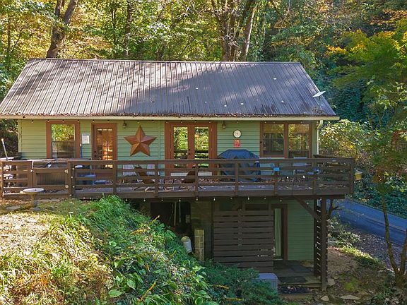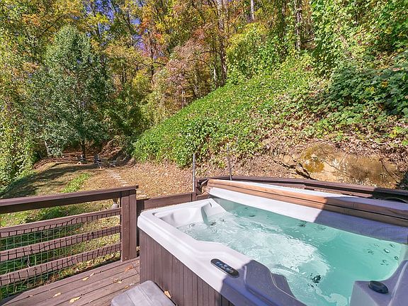 Charming 2BR/2BA creekside cabin, fully furnished in the heart of the Nantahala National Forest, just minutes from Bryson City and the Nantahala Outdoor Center with whitewater rafting, ziplining, and hiking. Currently used as a successful vacation rental. Main entry opens to a cozy lower-level living room with access to a covered porch. Upstairs, you'll find the main living area, kitchen, both bedrooms, and a spacious deck with a hot tub—perfect for soaking under the stars. Relax by the outdoor fire pit or enjoy the soothing sounds of the nearby creek. No HOA and no restrictions—ideal for short-term rental, second home, or full-time mountain living. Turnkey and ready to enjoy!