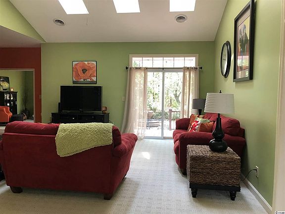 Cheery, vibrant brick patio home on a loop street close to the pool, tennis courts, and fitness room in the owners clubhouse. This kitchen has been updated with a plethora of cabinets, solid surface counter, lots of prep space and updated appliances. Currently furnished as a three bedroom - one of the rooms could be a den or dining room - buyers choice. There is also a sun-kissed room off the kitchen that could serve as an office if needed. The spacious and bright gathering room with skylights opens through a sliding door to the deck, patio, and wooded private low maintenance yard. The guest bedroom has a hall bath with tub/shower combination and the owners suite has a walk-in closet and en suite bath with a new walk-in shower. Roof replaced in 2010 and HVAC installed in 2015. This light-filled home is located in Heritage Plantation, a gated, golf course, waterway community with a marina on the ICW - Waccamaw River. Community amenities include four har-tru clay tennis courts, fitness room, pool, hottub, and so much more. The marina is a nightly gathering spot for breathtaking sunsets. Community is located close to beaches, boating, Brookgreen Gardens, restaurants, shopping and medical services, many world class golf courses and much more. Square footage is approximate and not guaranteed. Buyer is responsible for verification.