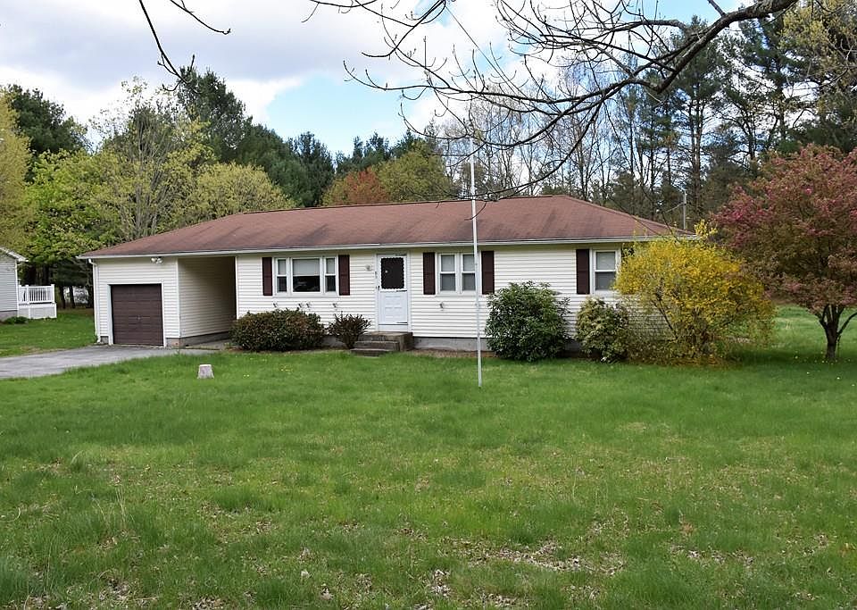A hip roof ranch with easy access for everyone. Hardwood floors throughout. Kitchen has a breakfast bar and sliders leading to an 11" x 23" enclosed porch with a flue. Rear deck overlooks a level yard. Location offers an easy commute to major highways Rte. 395, Mass. Pike, Rtes. 20, and 290.