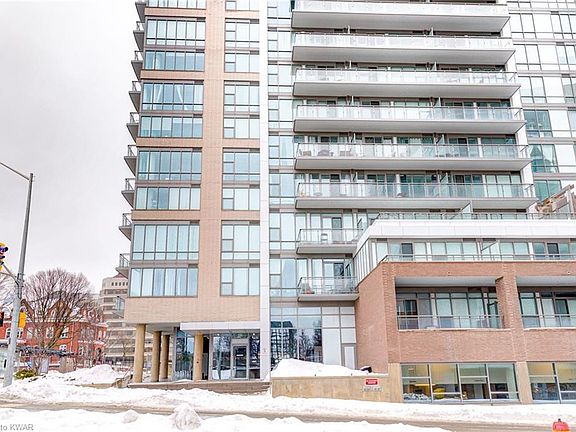 LOCATION LOCATION LOCATION! This beautiful 1 bedroom, 1 bathroom condominium is located downtown Kitchener, close to shopping, the LRT and beautiful Victoria Park. The very functional open concept layout features, all stainless steel appliances, granite countertops, a large kitchen Island & in-suite laundry. Not to be missed, is the large 140sqft balcony, prime parking location (directly across from the elevators) and an oversized storage locker. This unit is located on the 1st floor, so that means no waiting for the elevator! This sophisticated residence features first class amenities including concierge service, party room, private outdoor dining & a BBQ area.