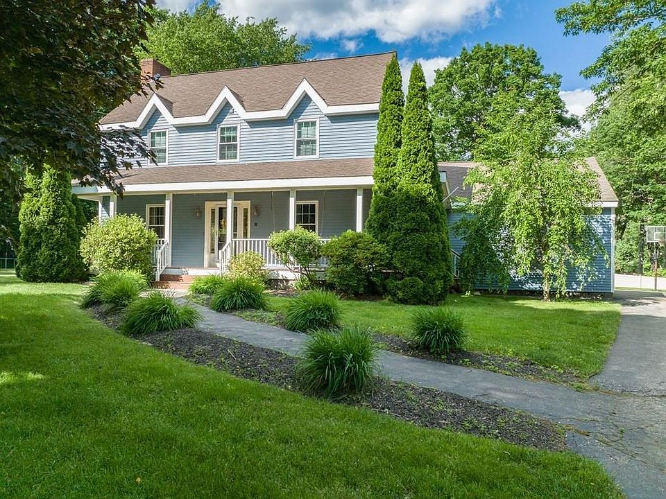 This beautiful cape is located on over an acre of manicured lawn with stone walls. This home features over 3000 sf of living space with plenty of room to spread out! The spacious open concept family room & dining room is great for entertaining & the cozy fireplace is wonderful for chilly New England winters. The cabinet packed kitchen has a center island, granite counters, stainless appliances & sliders that lead to a recent deck. Hdwd floors throughout. This home has an additional room on the first floor that can be used as an office, playroom, den, etc Located on the second floor are 3 bedrooms & 2 baths. Additionally there is a huge "man town" with wet bar & half bath located in the lower level. Perfect for game day! Outdoor amenities include a lovely farmers porch & fantastic yard with mature plantings, patio area, hot tub, fire pit and horse shoe pit ready for summer enjoyment. Furnace, 5 yrs. wired for generator. 3 zone heat. Quick closing possible.