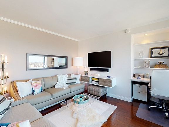 Welcome to this impeccably renovated unit offering a luxurious & centrally located city living experience in Boston's waterfront at Harbor Towers. As you step inside, you'll be greeted by oversized windows framing breathtaking views of the Boston Harbor & city skyline. Open living & dining area exudes elegance with white oak hardwood floors and a thoughtfully designed built-in desk area. This unit is flooded with natural light from sunrise to dusk. The kitchen has been tastefully renovated and features stainless steel appliances, granite countertops, and ample storage space. The spa-like bathroom is finished with white Carrara marble, including a glass-enclosed shower. The generous bedroom boasts a walk-in closet. Harbor towers offers 24-hour concierge & security gate, beautifully landscaped grounds, heated in-ground seasonal pool, bbq grills, & a private outdoor dining area. Steps away you'll find the Financial district, North End, Seaport and easy access to S. Station, I93N & South.