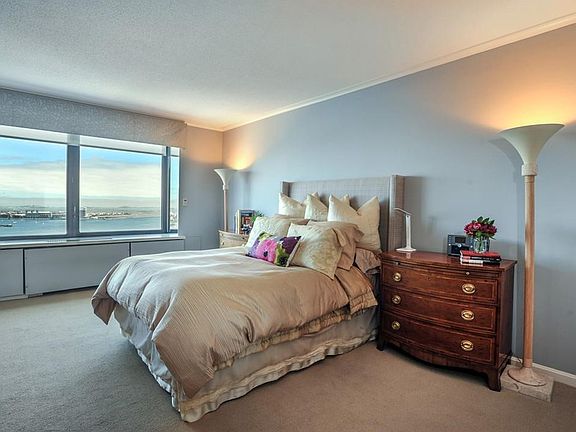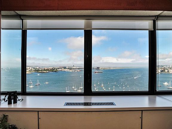 Introducing the most highly sought after home on East India Row offering private & unobstructed views from every corner of living space. Situated with a South-Eastern, corner exposure, this home delights with sunrises over the sparkling Harbor and the reflection of evening lights over the emerging Seaport skyline. The renovated kitchen boasts sleek and contemporary lines complimenting the open concept living/dining space. A custom, private balcony is outfitted with finishes creating an oasis in the City as well as the beautifully landscaped heated pool offering the largest manicured lawns on the Waterfront complete with grills for entertaining. Harbor Towers is a premier, full-service concierge building with on-site management. Offering City living at its best! Rental parking available.